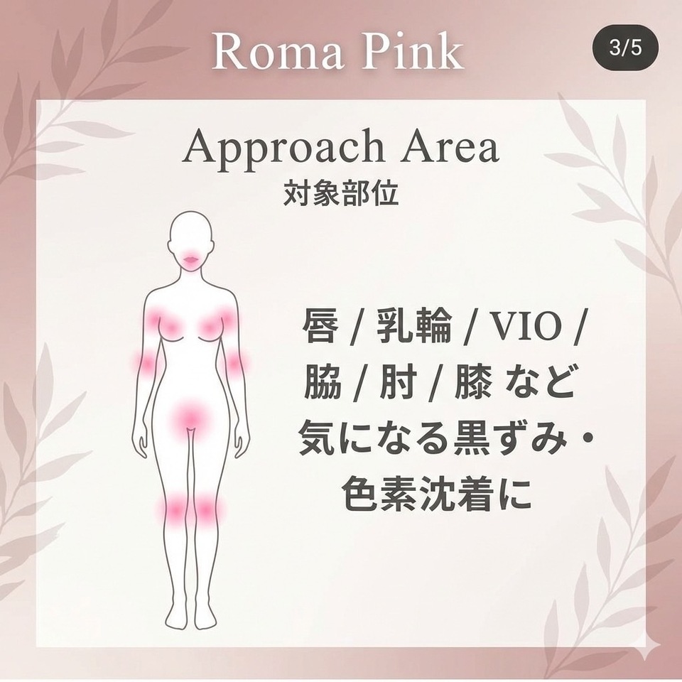 全身に使える:唇、バストトップ、脇、デリケートゾーン(VIO)、膝、太ももなど、体の気になる様々な黒ずみに対応できます。